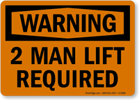 OSHA Warning Sign: 2 Man Lift Required (S-9380)