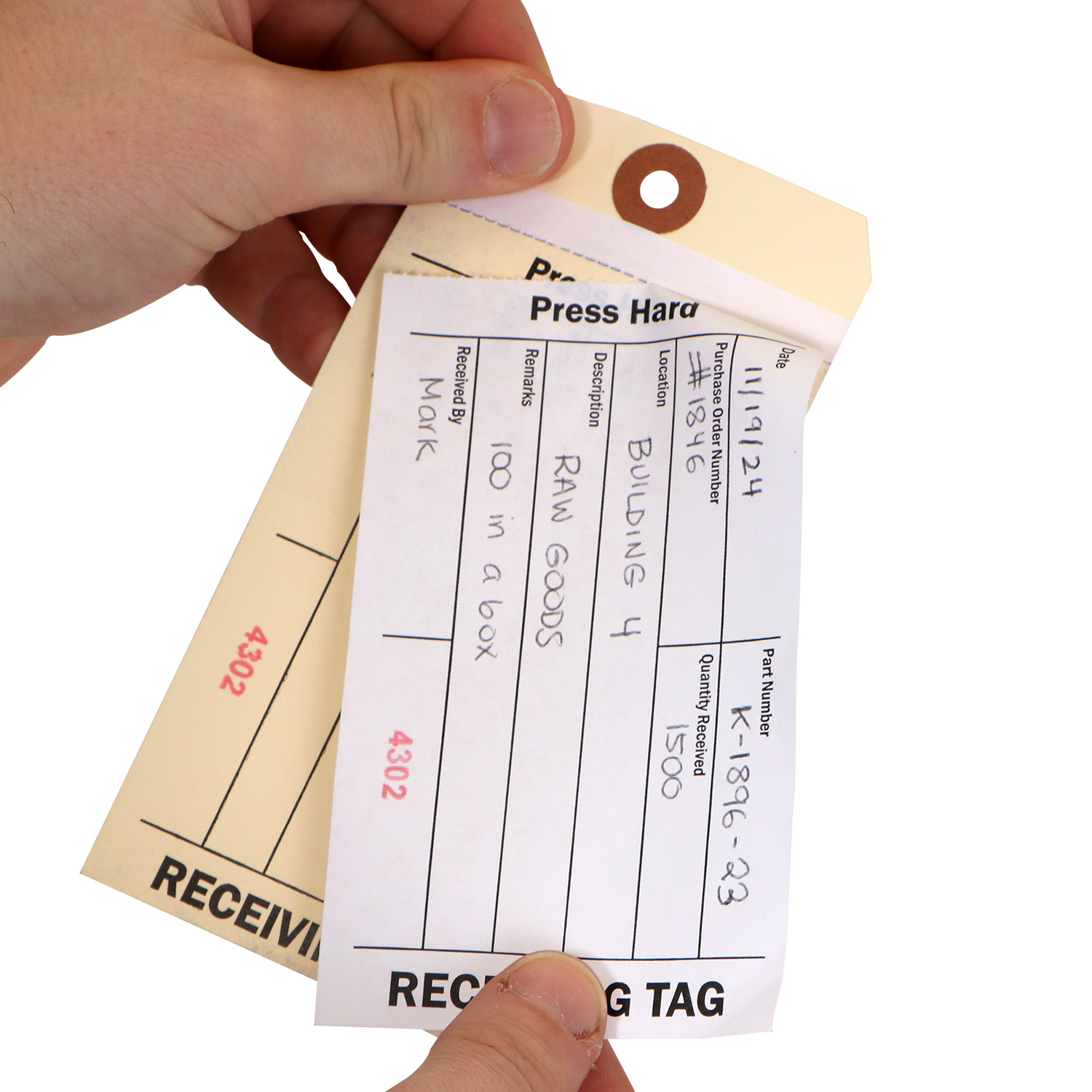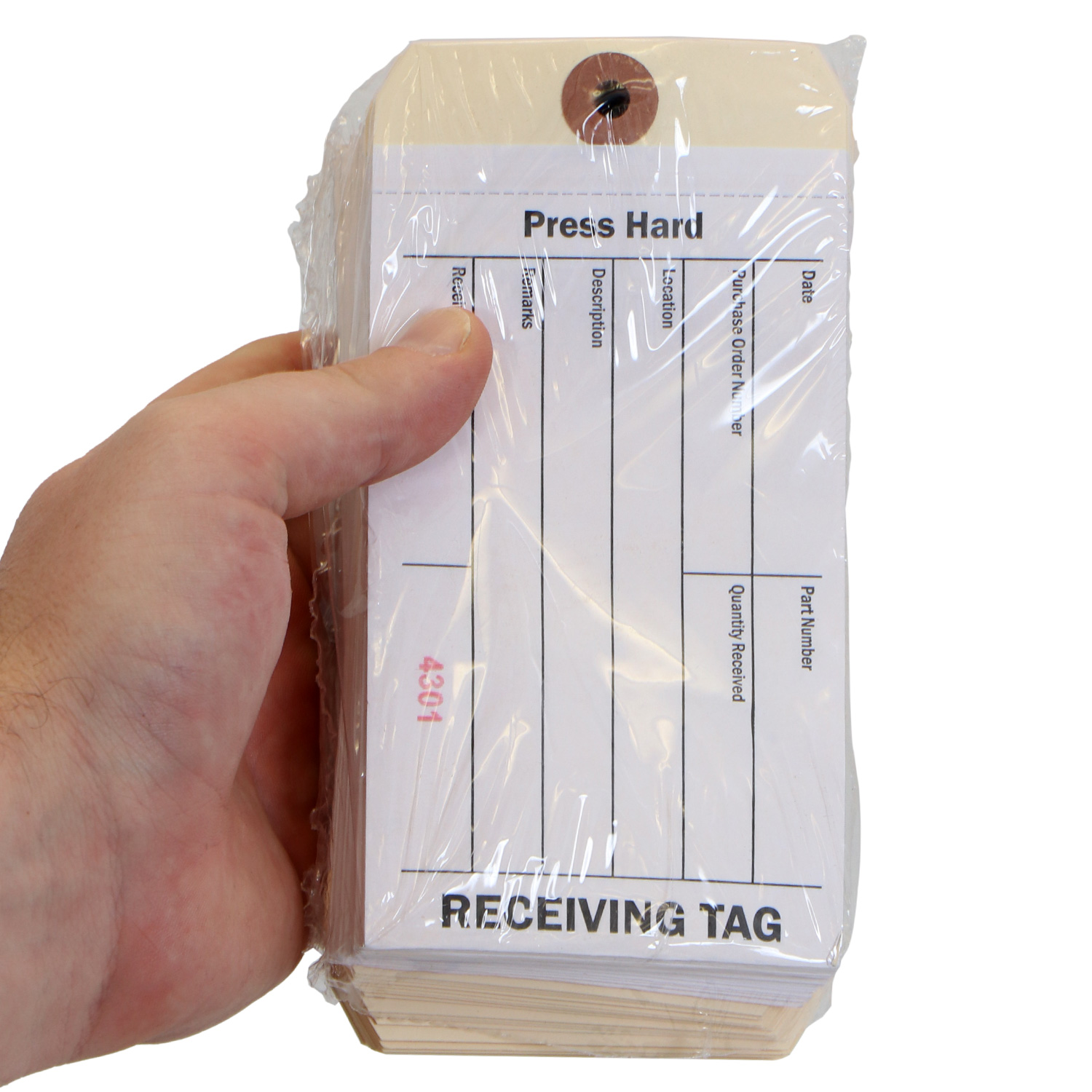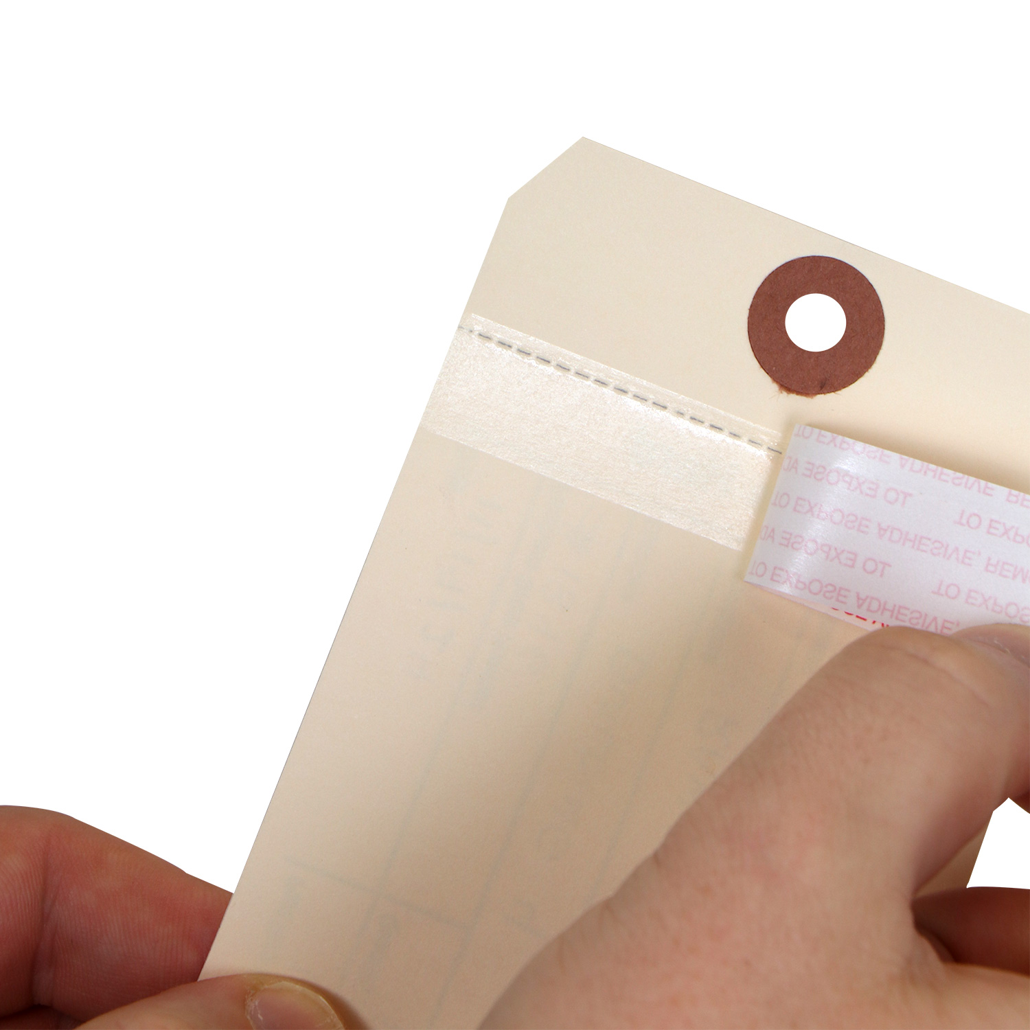 - This combo inventory RECEIVING tag has adhesive strip on the back of the tag that can be used to stick that tag to a flat surface. To expose the adhesive, just peel of the liner (for simple hanging applications, just leave the liner on).