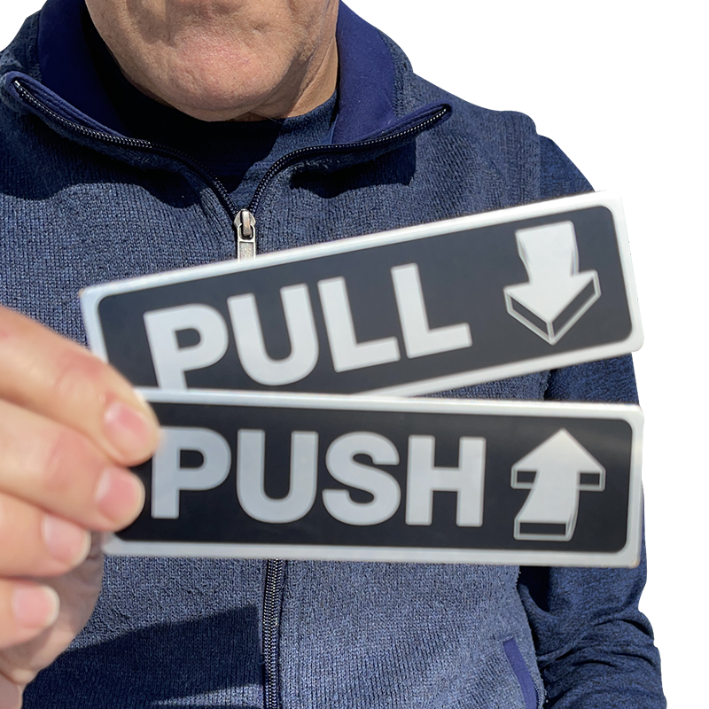 - Sold as a set of 2 signs (1 Push, 1 Pull).