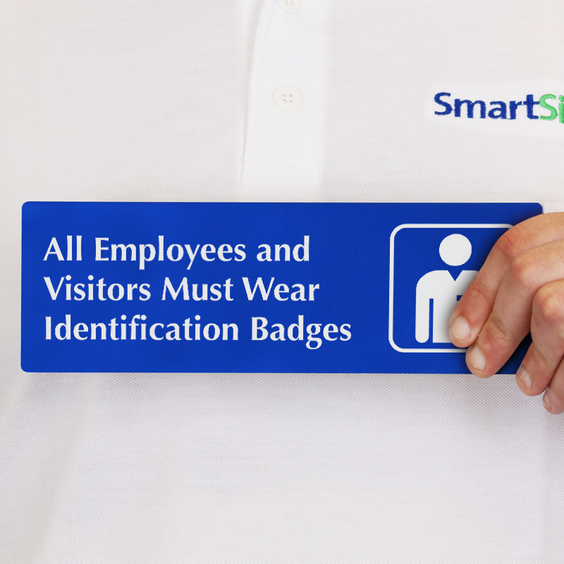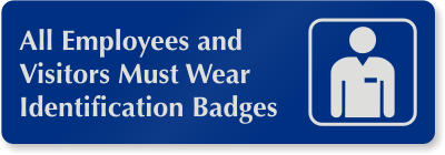 3in. x 9in. Visitor DiamondPlateâ„¢ Door Sign: All Employees And Visitors Must Wear Identification Badges Sign (with Graphic) DP-0004 Learn More...