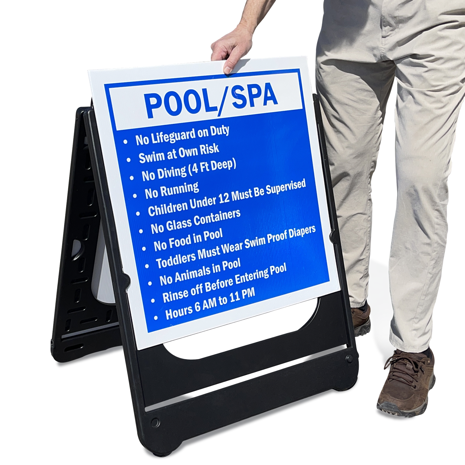• JuniorBoss A-Frames accommodate a sign panel that is 24” x 24”.