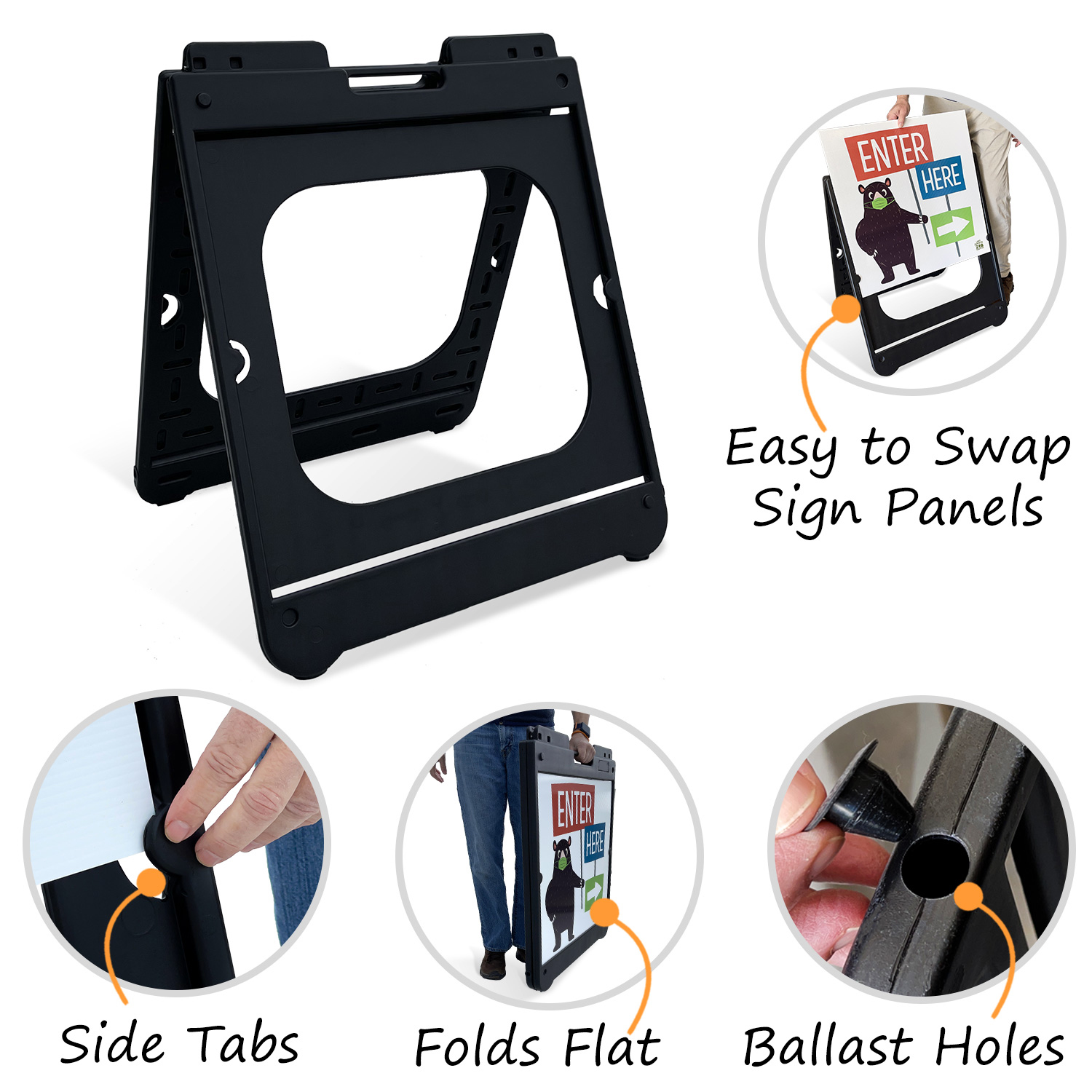 • These lightweight frames are ideal for your safety warnings or sidewalk advertising.