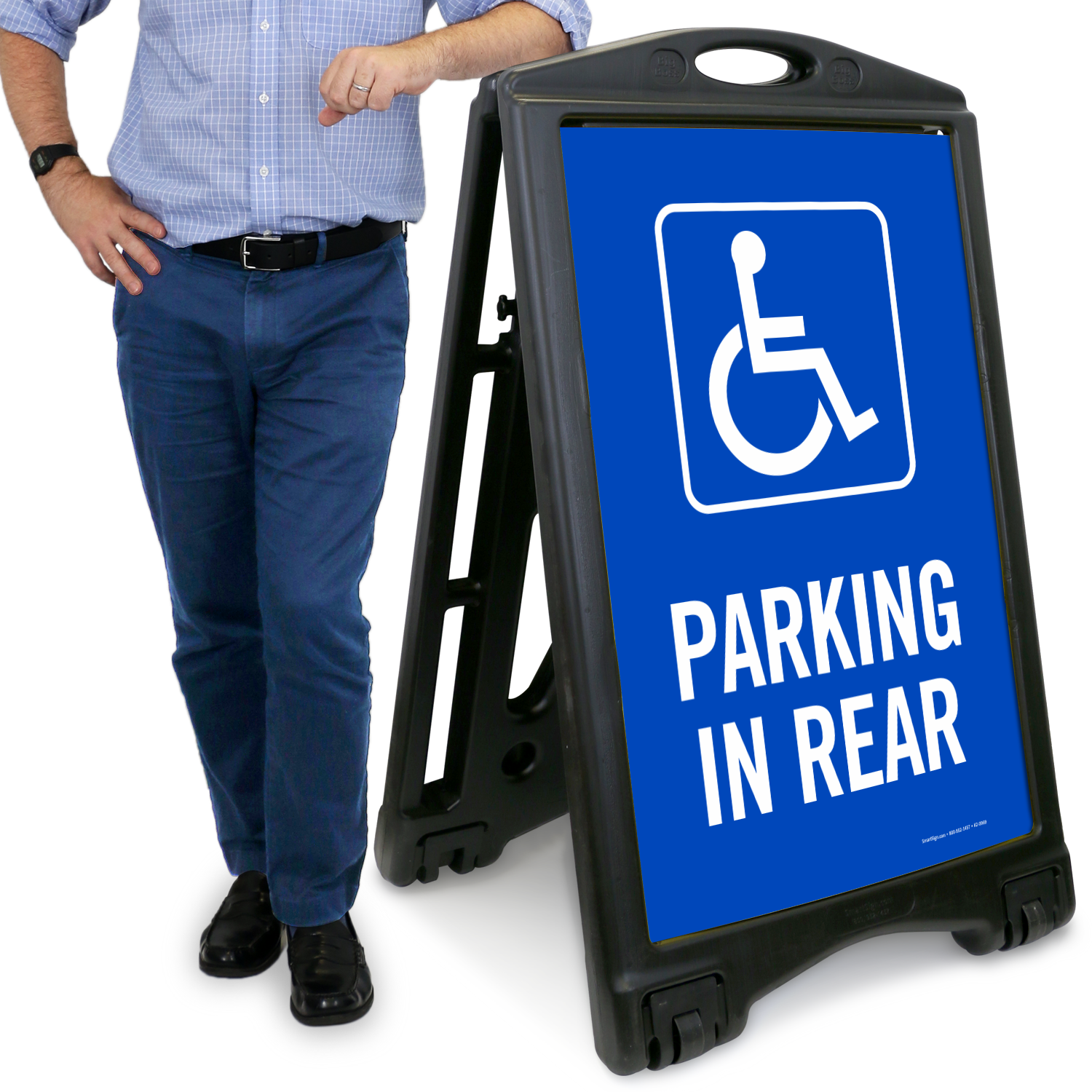 Use this A-frame portable sidewalk sign kit to inform patrons about the availability of parking space behind your building.