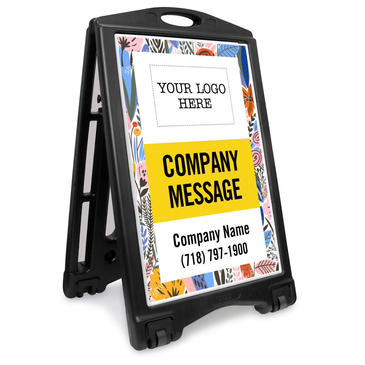 - Made of corrugated plastic, the sign panels can be easily customized and fit into both sides of the frame. Sign panels can be changed if needed.