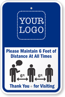 Social Distancing signs cannot get better than this — a graphical template can be customized with your company logo.