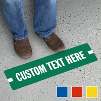 We offer custom floor decals in three material choices - anti-skid vinyl, polyolefin, and Glow signs use GloBrite #7520 safety grade photoluminescent film. These signs are available in 18mil and 25 mil thickness, depending on the material used.