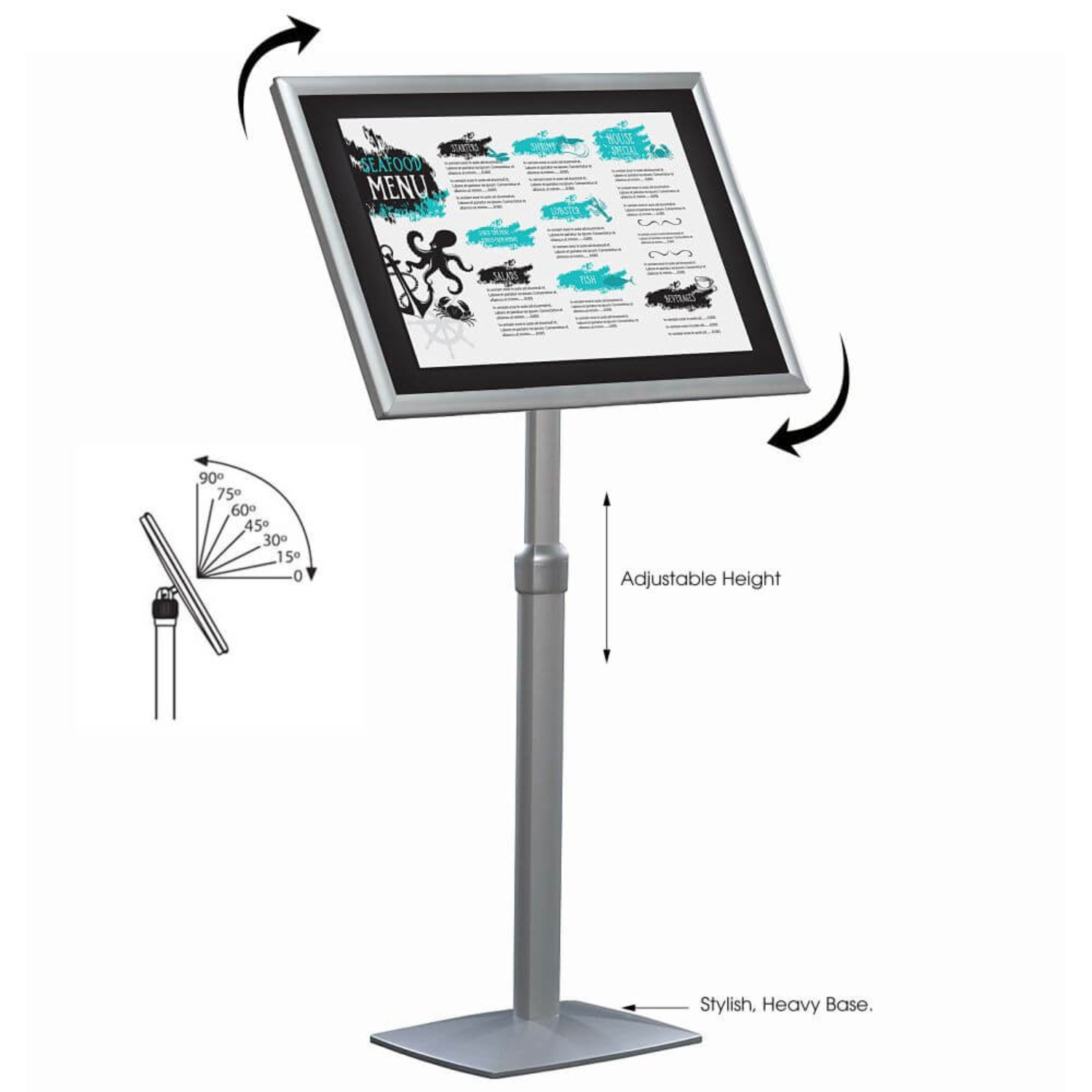 Our most versatile heavy-duty stand for 18" x 22" graphics. The adjustable height and weighted base make this the ideal solution for large-scale information displays.