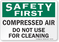 • • We offer hundreds of different Safety First Signs in stock. These follow both the traditional OSHA Safety First sign design and the ANSI Safety First sign designs.