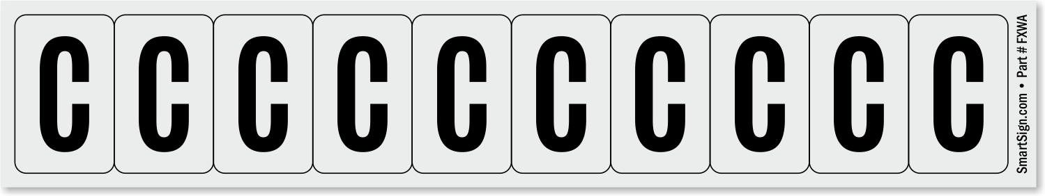 Weather-resistant, pressure-sensitive Aluminium 1 Inch letters black on white ("C") are ready to use anywhere, anytime. Take advantage of the best temperature and weather tolerance for a long-lasting message.