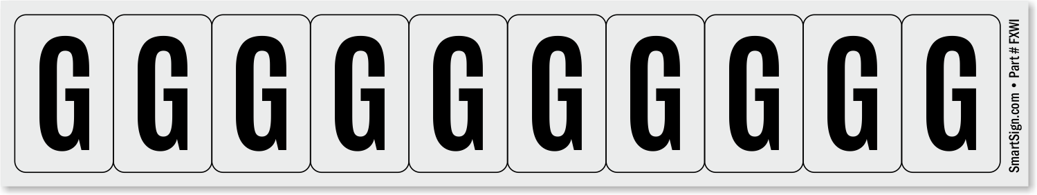 Weather-resistant, pressure-sensitive Aluminum 1 Inch letters black on white ("G") are ready to use anywhere, anytime. Take advantage of the best temperature and weather tolerance for a long-lasting message.