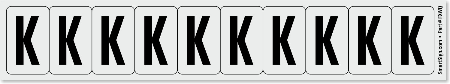 Weather-resistant, pressure-sensitive Aluminium 1 Inch numbers black on white ("K") are ready to use anywhere, anytime. Take advantage of the best temperature and weather tolerance for a long-lasting message.