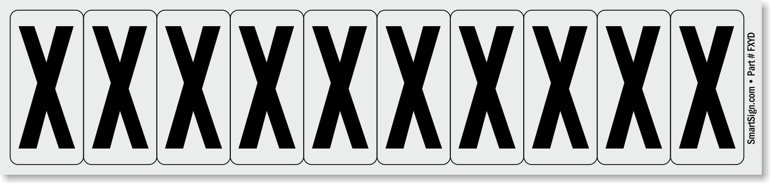 Weather-resistant, pressure-sensitive Aluminum numbers black on white ("X") are ready to use anywhere, anytime. Take advantage of the best temperature and weather tolerance for a long-lasting message.