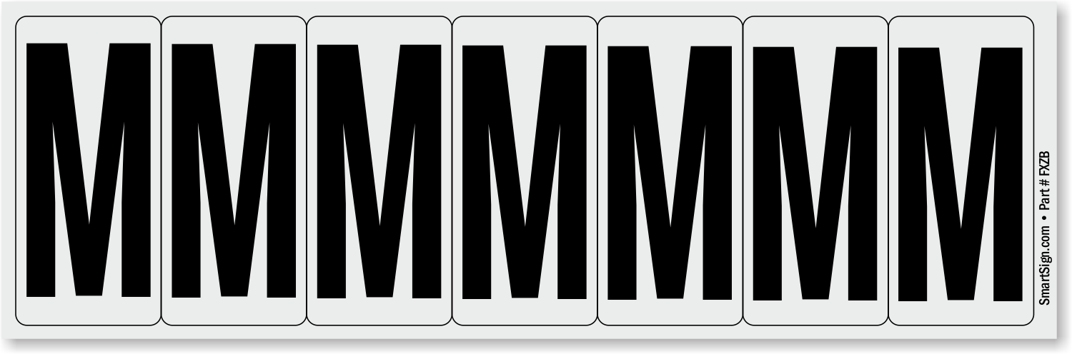 Weather-resistant, pressure-sensitive Aluminum 2.25 Inch letters black on white ("M") are ready to use anywhere, anytime. Take advantage of the best temperature and weather tolerance for a long-lasting message.