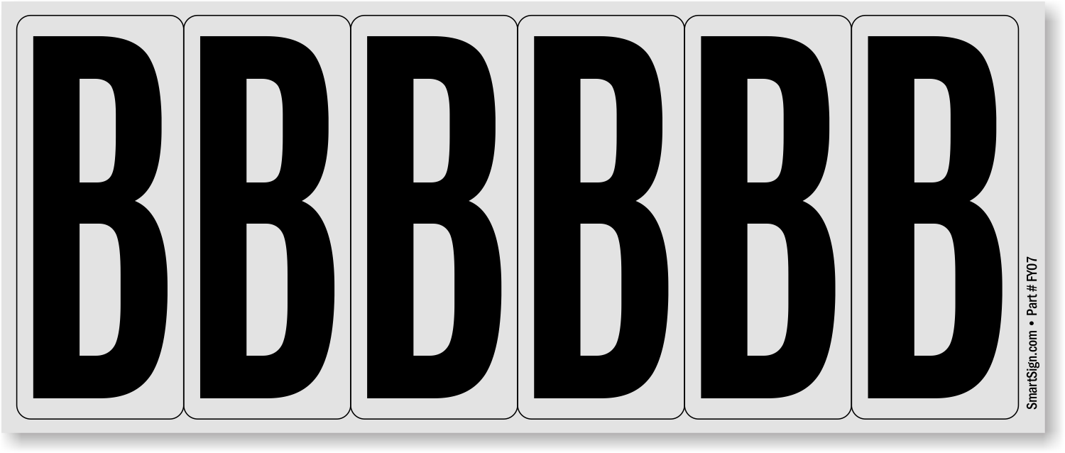 Weather-resistant, pressure-sensitive Aluminum letters black on white ("B") are ready to use anywhere, anytime. Take advantage of the best temperature and weather tolerance for a long-lasting message.