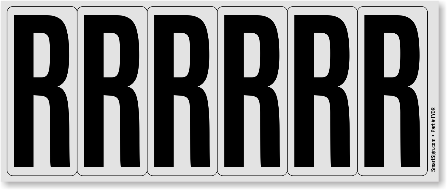 Weather-resistant, pressure-sensitive Aluminum letters black on white ("R") are ready to use anywhere, anytime. Take advantage of the best temperature and weather tolerance for a long-lasting message.