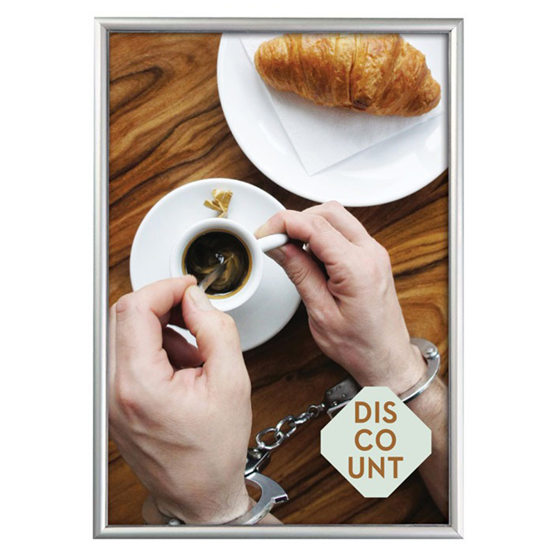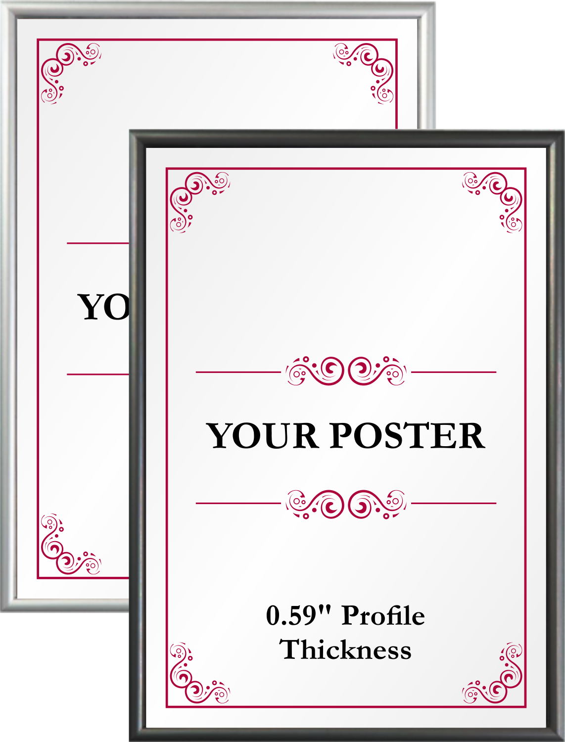 Wall-mounted aluminum snap frames provide a clean, modern look for your existing posters. The 0.59" profile is subtle and professional.