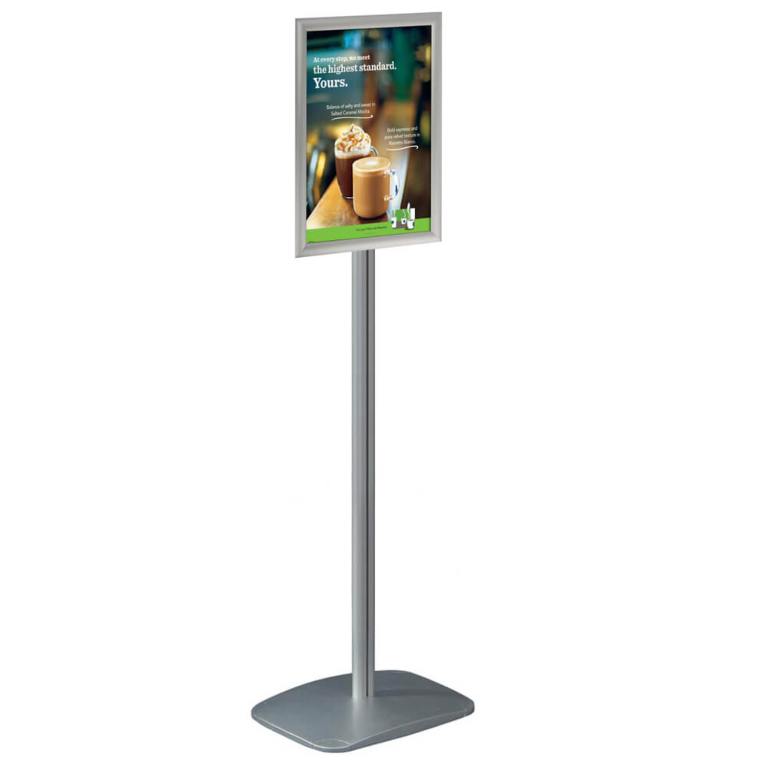 The 11" x 17" mitered corner pedestal sign holder offers a formal presentation for your graphics. It is the perfect choice for professional offices and galleries.
