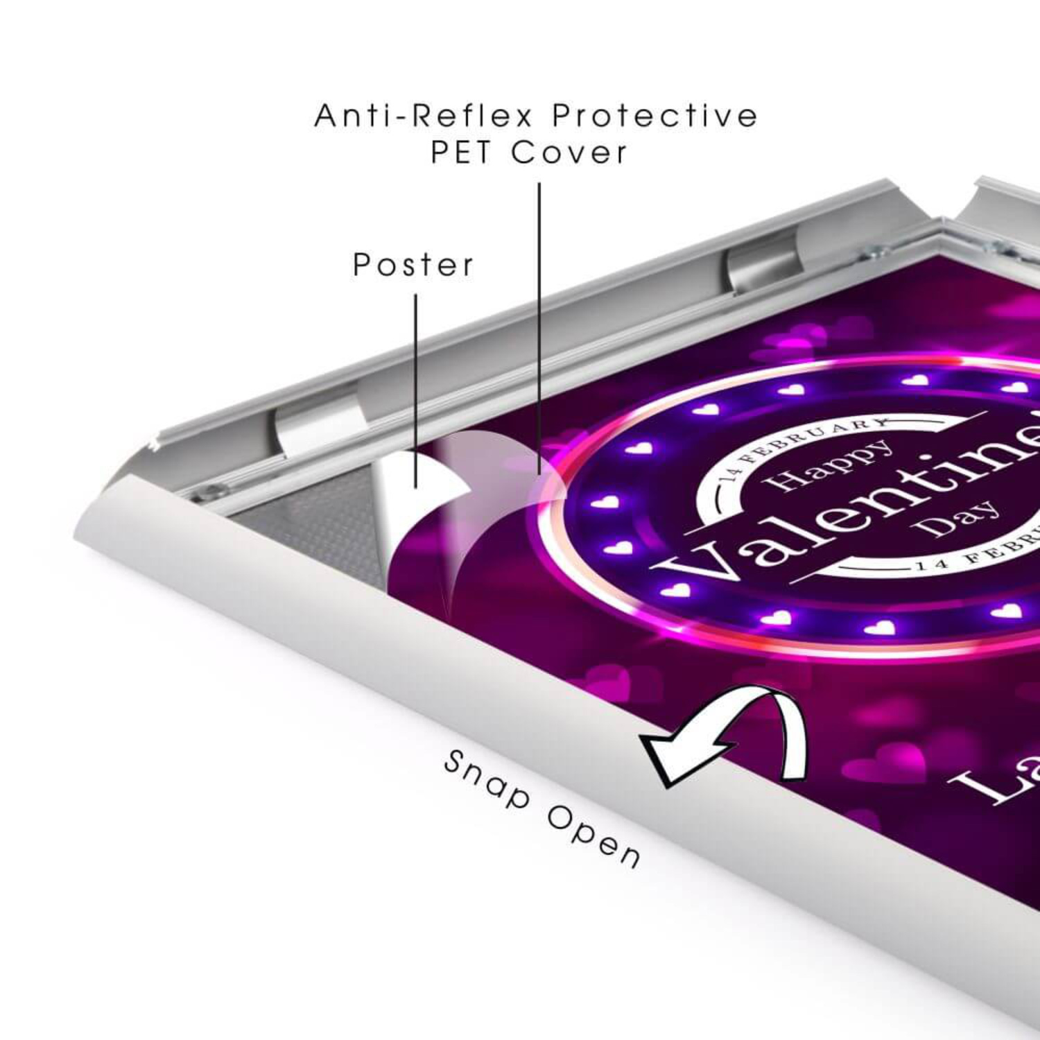 - Traditional mitered frame style provides a sophisticated border for signage.