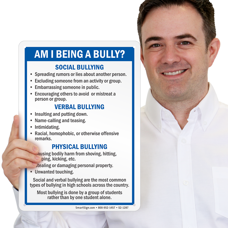 Are you A Bully and don't know about It? Let students make a check on themselves if they are being a bully with this sign describing social, verbal and physical bullying.