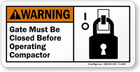 Examples include "warning - electric panel", "warning - pinch point", "warning - forklift traffic", and "warning - biohazard".
