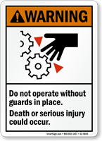 An ANSI Warning sign features an orange header and indicates a hazardous situation that could result in death or serious injury. You can find these in our ansi warning signs collection.