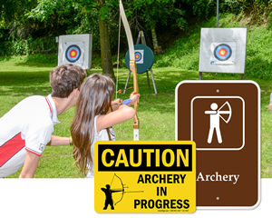 Bullseye! Install Archery Range Signs to protect the public. Make sure unauthorized or unaware people remain out-of-bounds. Place these signs near the range to warn the public to keep out of danger zones.