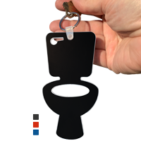 • • Stock restroom key chains feature print on one side. With our Custom Bathroom Key Chains, we offer the option to print your message on both sides.