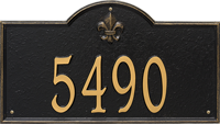 The fleur-de-lis emblem on this personalized address sign creates a distinctive style reminiscent of French Country and New Orleans. The Bayou Vista Estate Wall One Line Address Plaque is made from rust-free cast aluminum providing excellent quality with a charming rustic appeal.