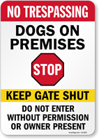 We also offer signs that combine the dog warning with the no-trespassers, no-solicitors message.