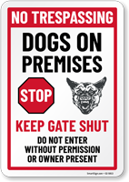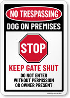 We also offer signs that combine the dog warning with the no-trespassers, no-solicitors message.