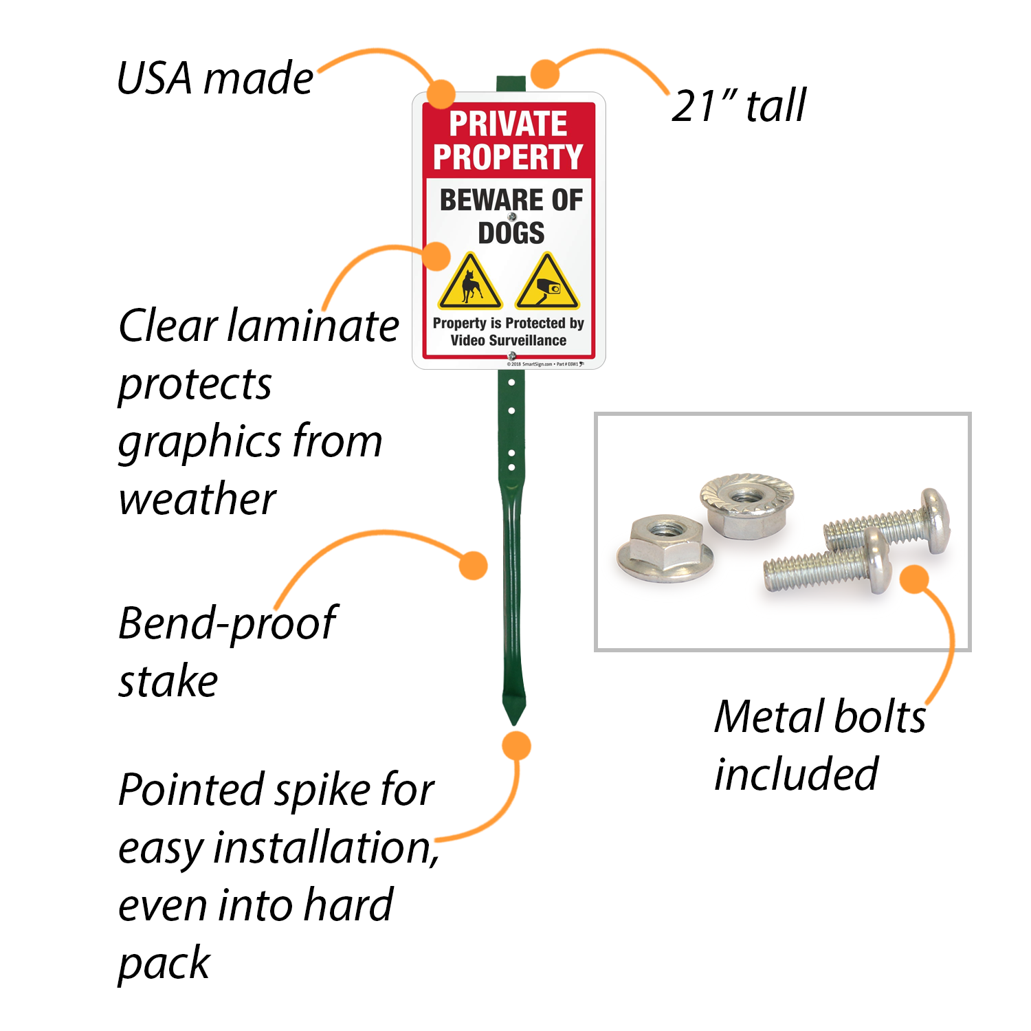 Comes with a 15 in. x 10 in."H-Stake" for easy mounting. Sign stands at a total of 29" once installed into the stake.