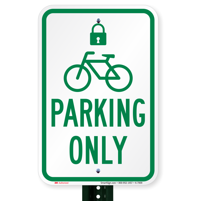 Mark bicycle parking spots and remind cyclists to lock their bikes. This durable Bicycle Parking Only sign with cycle and lock symbol is easily understood by all and keeps everyone informed of secure and convenient bike parking areas.
