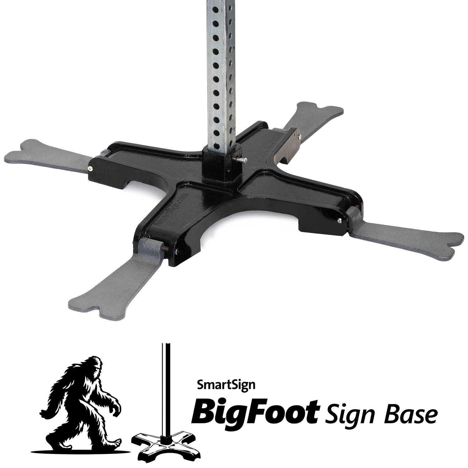 SmartSign: Thank you for your order. We appreciate your feedback. Our cast iron 14" base includes a 4-foot-tall post that is ideal for signs that are 18" x 18" or smaller.