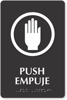 At-door instructions are always appreciated and they prevent confusion as well. Install this Bilingual TactileTouchâ„¢ Braille Sign on the door or near the door.
