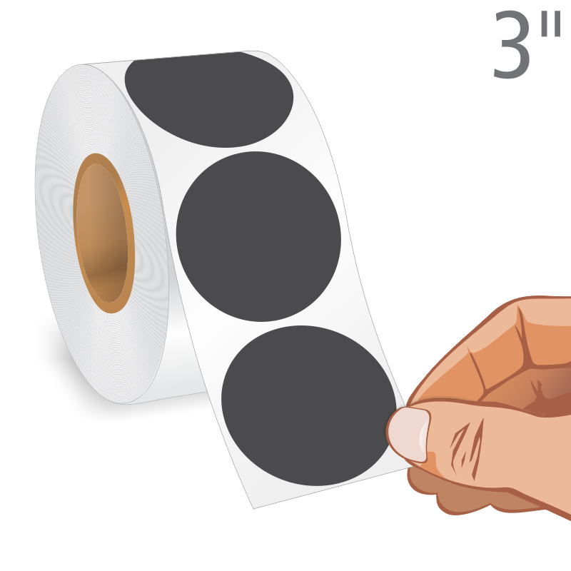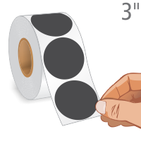 Simply peel a Black Round Dot Sticker and apply it to keep track of items in your inventory. Buy a complete roll of 3 inch labels and save money.