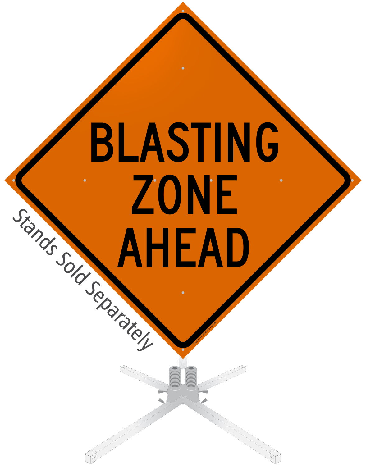 Alert drivers to an upcoming blasting zone where specific rules will apply.