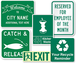 Green represents rejuvenation and renewal. The color of the year strongly symbolizes nature and growth, reflected in campground and recycling signs. After all, what better way of urging people to go green than with green eco-friendly messages? Remind people to pitch in or not to fish in unwanted areas.