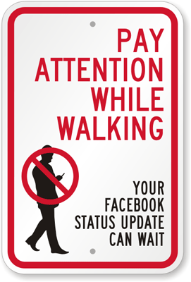 Pay Attention While Walking Sign