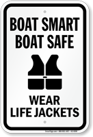 Boating Sign: Boat Smart Boat Safe, Wear Life Jackets (with Symbol) (K2-0200)