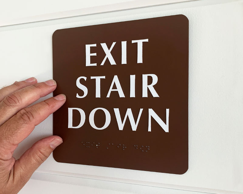 Ensure ADA compliance in your facility with our Braille Stairs Signs, perfect for marking restrooms, stairs, and exits. Designed to assist the visually impaired, these signs guide users to stairs and exit routes effortlessly.