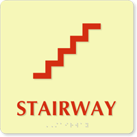 Ensure ADA compliance in your facility with our Braille Stairs Signs, perfect for marking restrooms, stairs, and exits. Designed to assist the visually impaired, these signs guide users to stairs and exit routes effortlessly.