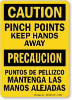 Place "Pinch Point" signs directly on the machine near the specific area where a hand or clothing could be caught. The closer the sign is to the hazard, the more effective it is. This immediate warning ensures that workers remain mindful of their hand placement during operation. Our pinch point do not operate with guards removed sign is purpose-built for direct machine mounting at the exact point of entanglement or crush risk.