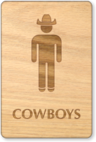 We make our wooden men’s restroom signs with 1/8" thick wood. These engraved signs look rather elegant and have rounded corners for safety. Each sign comes with adhesive foam pads for easy installation.