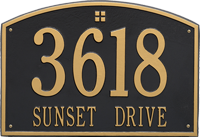 The Whitehall Products Cape Charles Estate Wall Address Plaque (Two Lines) displays your address in style. The address plaque is made from rust free cast aluminum providing excellent quality. A classy emblem adds distinction and charm to the top of this house number sign.
