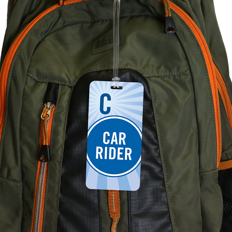 Car Rider students will be easily identifiable with these blue striped Backpack Tags.