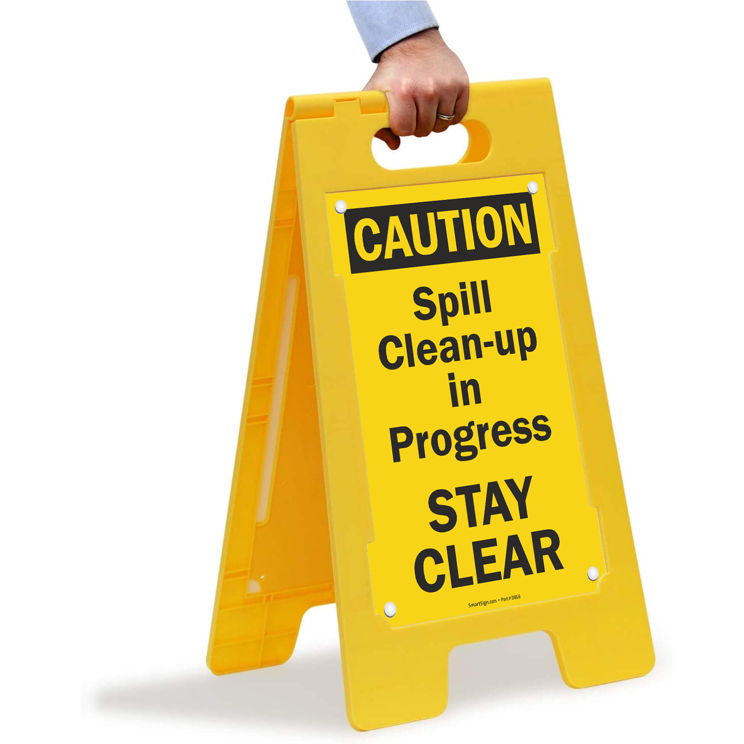 Use this sign to warn pedestrians that you're cleaning up a spill. Place near the hazard area to prevent slip and fall accidents.