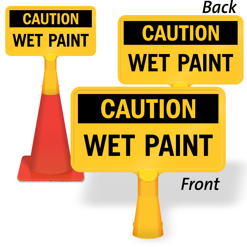 Highly visible no-tip, portable Traffic Cone Sign is a simple yet efficient means of warning people of wet paint.