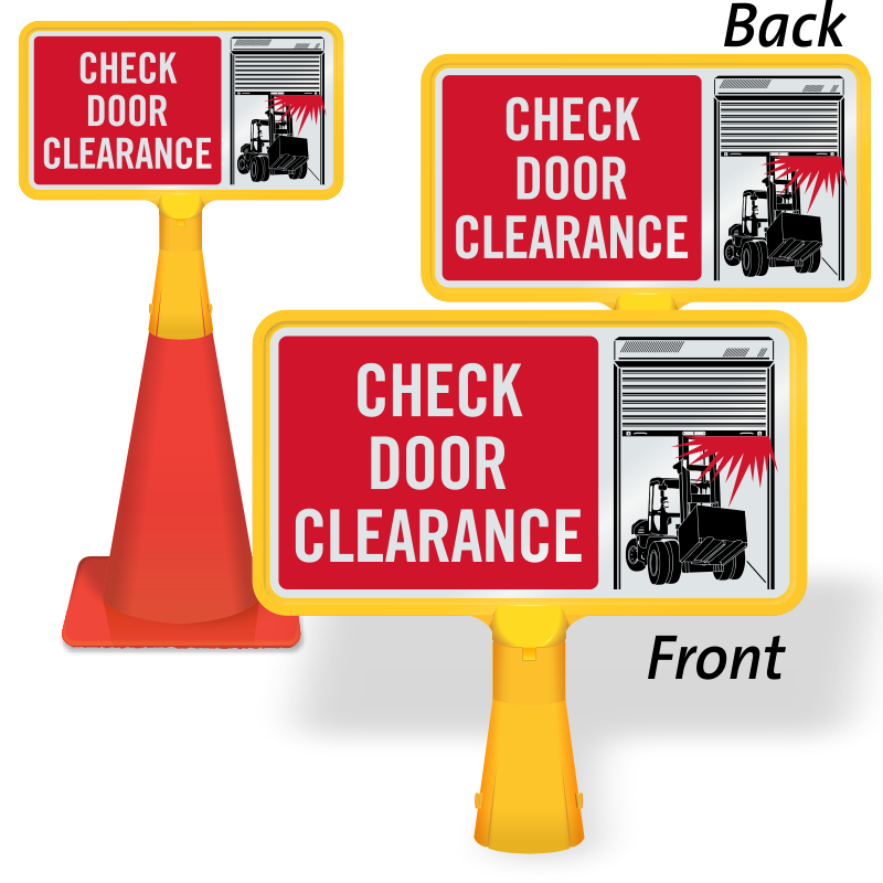 Place this highly visible no-tip, portable Traffic Cone Sign to alert people to low door clearance and prevent accidents.