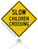 Yes, we offer portable A-frame and "In-Street" pedestrian stands for temporary use during active play hours or school drop-off. These are often used as pedestrian crossing signs to physically narrow the road and force drivers to slow down in high-activity zones.