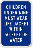 Rules Sign: Children Under Nine Must Wear Life Jacket Within 50 Feet Of Water (K-0307)